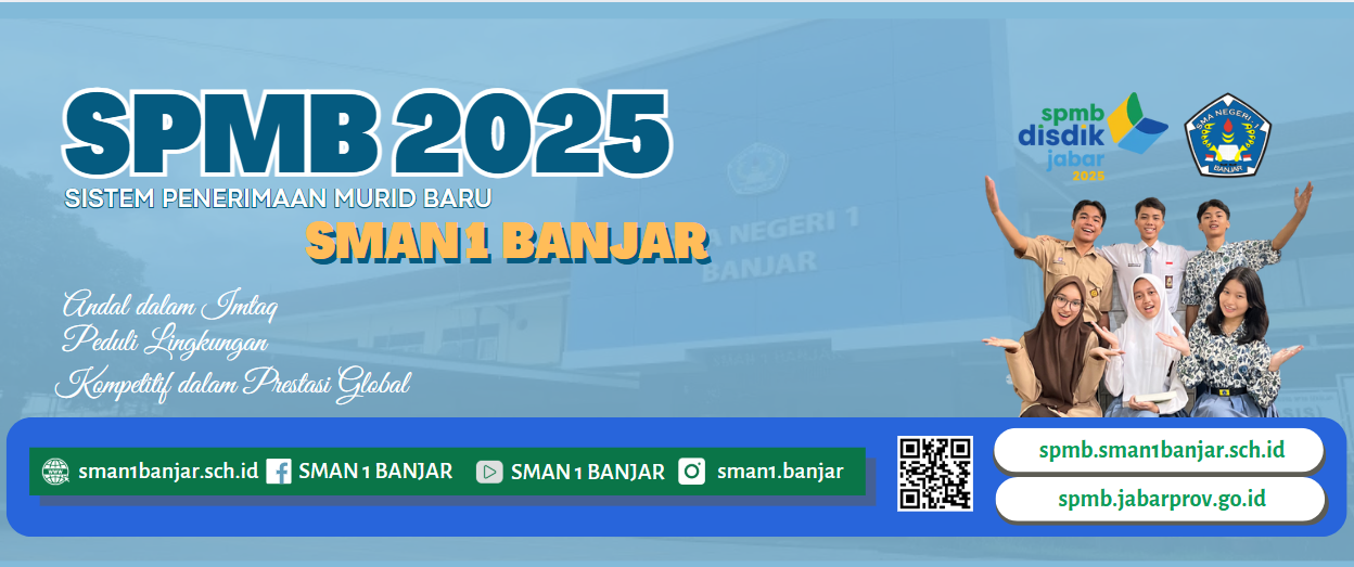 Sistem Penerimaan Murid Baru yang selanjutnya disingkat SPMB adalah keseluruhan rangkaian komponen penerimaan murid yang saling berkaitan dalam mewujudkan layanan pendidikan yang bermutu bagi semua. SPMB SMAN 1 Banjar menggunakan sistem penerimaan yang dikelola oleh Dinas Pendidikan Jawa Barat
